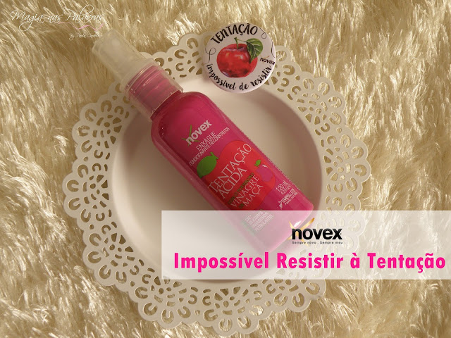 Desta vez o produto que recebi foi o Spray Condicionante Tentação Ácida de Vinagre de Maçã. Com o sol à porta, os cabelos tendem a ficar mais secos e daí até ficarem danificados é um passinho que nem damos por ele. Este produto veio tornar-se o meu melhor aliado na luta contra os efeitos do sol. Porque? porque se trata de um Spray de acção revitalizante e reconstrutora que reequilibra o PH do fio, fecha e sela as cutículas e pontas duplas, é antioxidante e dá brilho.